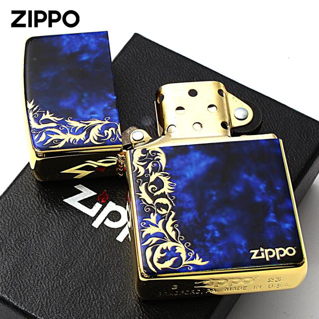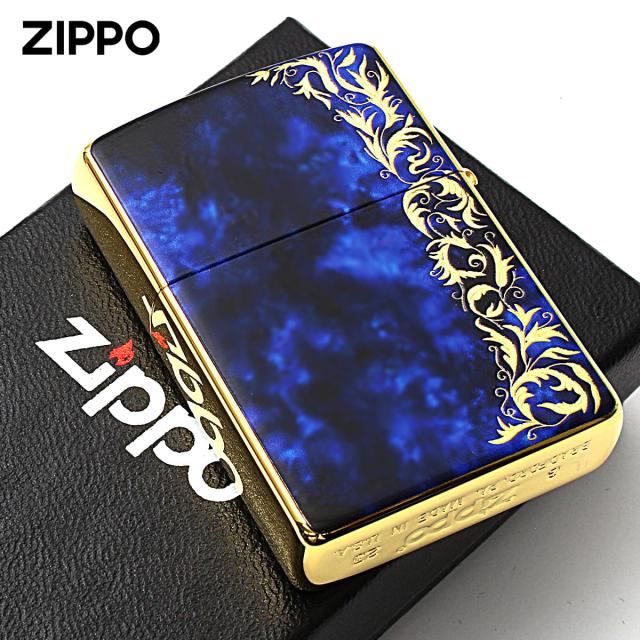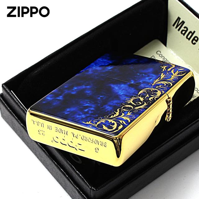 Zippo ジッポライター 大理石調 ブルーマーブル アラベスク 唐草 金メッキ Marble Arabesque 2G-BLARZ メール便専用商品