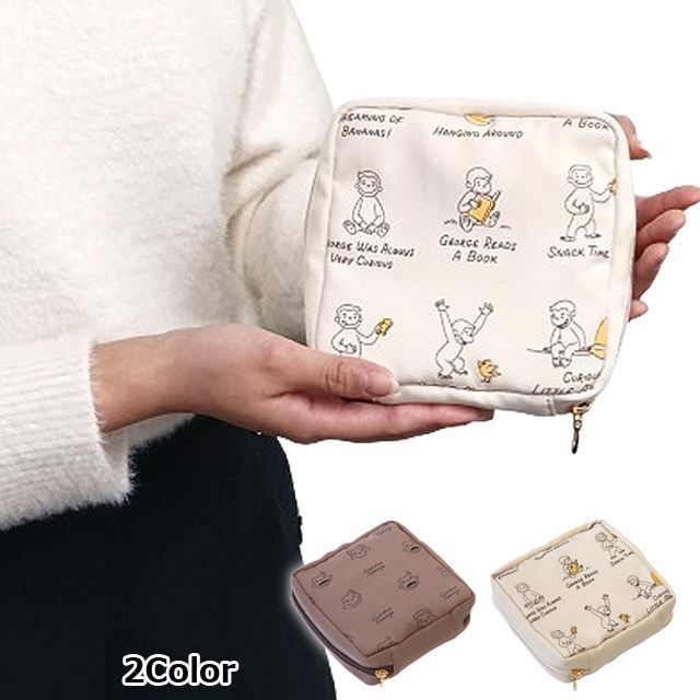 ジョージの愛くるしい一コマをたくさん散りばめた、スクエアポーチ。