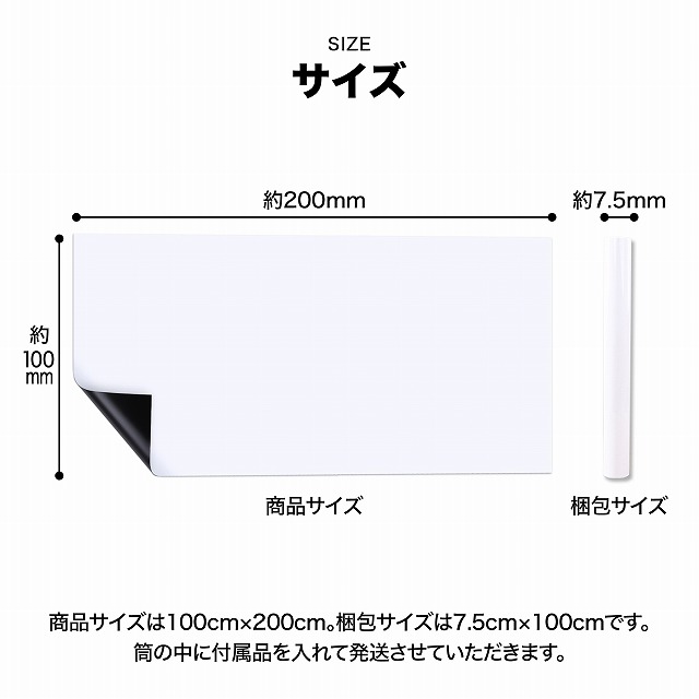ホワイトボードシート 100×200cm 粘着式 マグネット 磁力 カット 裁断可能 壁面張り付け ペン付き 消しゴム付き 黒板シート 壁 落書きシート