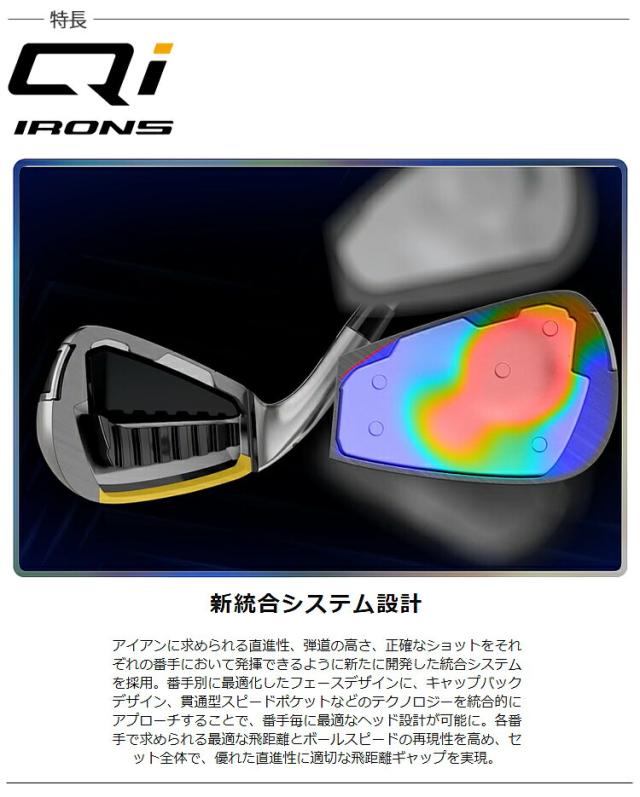 各番手に求められる性能を番手毎に最適化設計することで、飛距離性能とかつてない直進性能を搭載したQi アイアン誕生