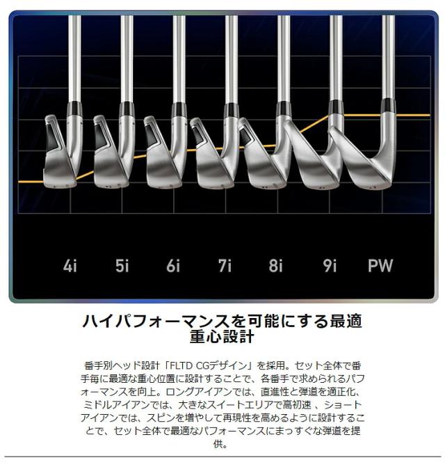 番手別に考えられた重心ヘッド設計を採用。 セット全体で番手毎に最適な重心位置に設計することで 各番手で求められるパフォーマンスを発揮します。