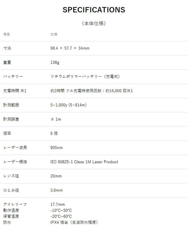 | 計測範囲 | 5〜1,000y (5〜914m) | |||
