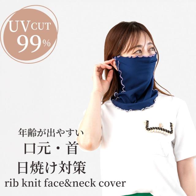 ネックカバー 夏 夏用 フェイスカバー フェイスガード 接触冷感 ひんやり uv uvカット 首の後ろ リブニット UV フェイス & ネックカバー 首 口元 首元 日焼け 対策 グッズ ネイビー 紫外線対策 うなじ 冷感 UVcut UV対策 春 夏 秋