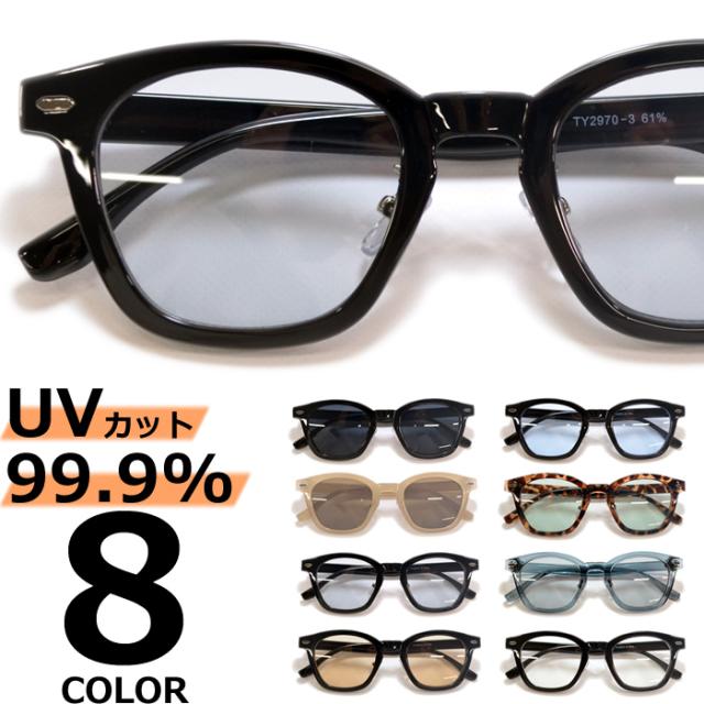 サングラス 伊達メガネ メンズ レディース ウエリントン ライトカラーレンズ 薄い色 ブラック スモーク デミ ブラウン グレー ベージュ ブルー ネイビー グリーン クリアー 透明レンズ 全8色