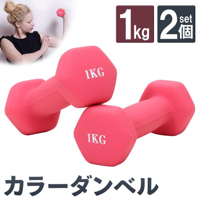 ダンベル 1kg 2個 セット カラー トレーニング 筋トレ 初心者 エクササイズ ダイエット 鉄アレイ PVC コーティング 筋トレグッズ コンパクト おしゃれ かわいい 自宅 ジム 持ちやすい ピンク
