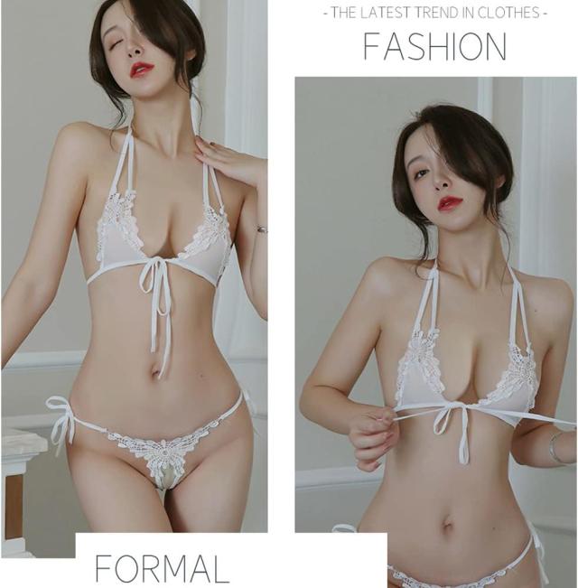 セクシー マイクロビキニ コスプレ ビキニ 極小 エロ 透け透け アダルト過激 下着 水着 小悪魔 ラブリーレース かわいい 可愛い ミニブラ +Tショーツ 2点セット