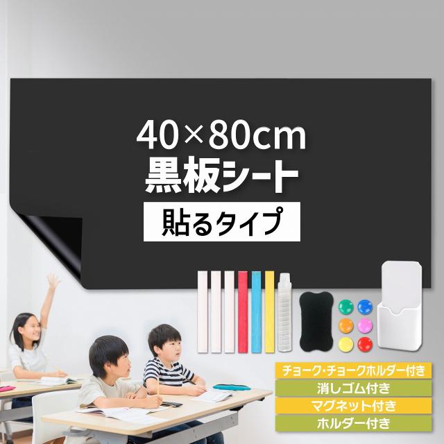 黒板シート 40×80cm 粘着式 マグネット 磁力 カット 裁断可能 壁面張り付け チョーク付き 消しゴム付き ホワイトボードシート 壁 落書きシート