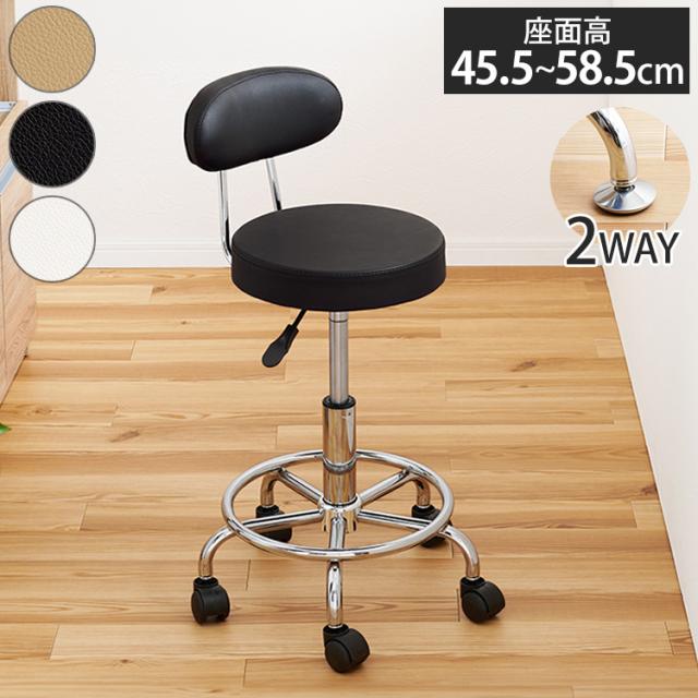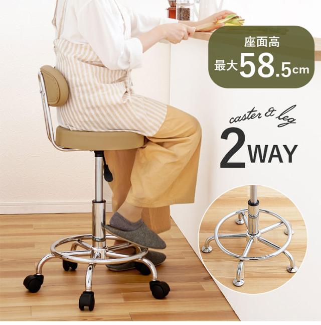 キッチンチェア 昇降式 回転 カウンターチェア キャスター ゆったり背もたれ 2way アジャスター 椅子 イス チェア ガス圧 昇降チェア バーチェア モノトーン 白 黒 ホワイト ブラック おしゃれ(代引不可)【送料無料】