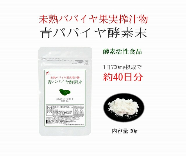 | 未熟カリカパパイヤ果実搾汁物 青パパイヤ酵素末 30g | ||||||||||||||||||||