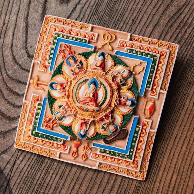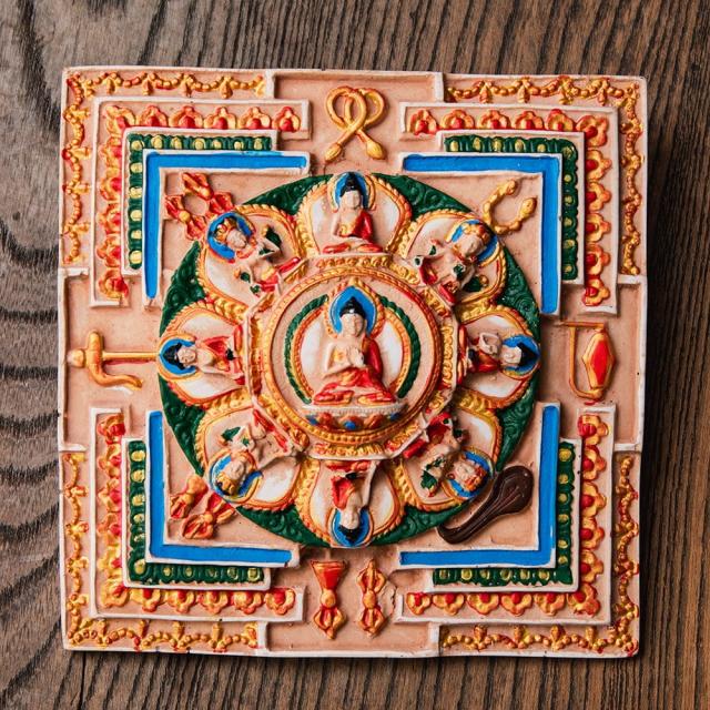 〔壁掛けタイプ〕立体曼荼羅 釈迦陀如来曼荼羅 約11.7cm×11.7cm×2cm / レジン 神様 ヒンドゥー教 仏教 置物 チベット仏教 インド エスニック アジア 雑貨