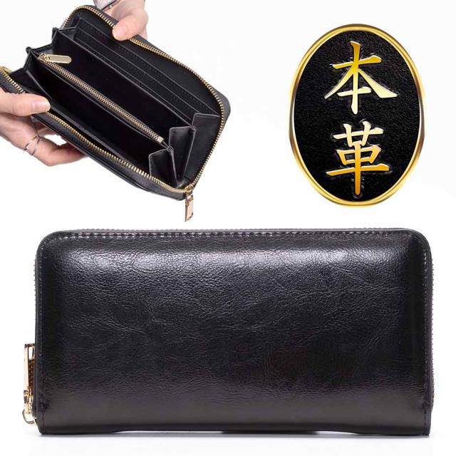 長財布 ユニセックス レディース メンズ 本革 大容量 たくさん入る 高級感 オイルレザー 収納ポケット ファスナー ブラック 黒 牛革 財布 ウォレット 小銭入れ カード入れ 柔らかい マット レザー 本革 本皮 送料無料