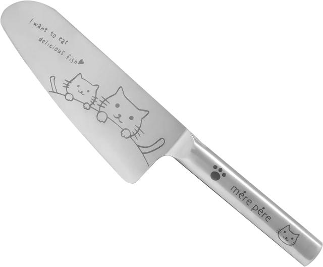 ・かわいい猫のデザインがあしらわれた、モリブデン鋼を使用した本格的な切れ味の子供向け包丁です。