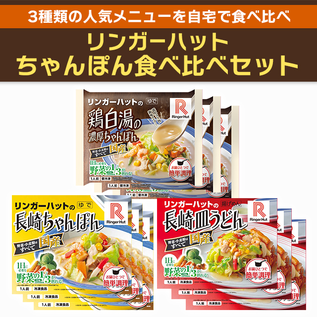 ・リンガーハットの人気メニューが自宅で味わえる「ちゃんぽん食べ比べセット」をお届けします。