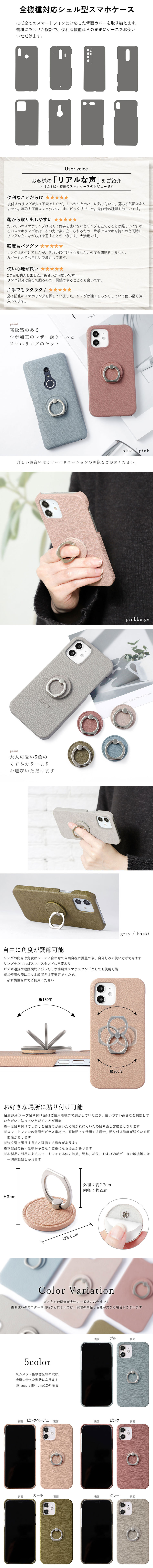 ■高級感のあるシボ加工のレザー調ケースとスマホリングのセット