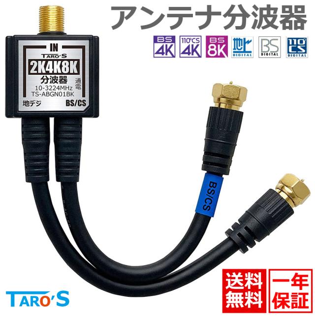 送料無料 テレビアンテナ分波器 ぶんぱき 2K 4K 8K BS CS 地デジ 衛星放送 ケーブルテレビ 対応 金メッキ 4C-FBケーブル 2本 一体型 15cm ブラック 黒 TS-ABGN01BK タローズ