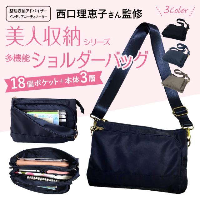 スッキリ収納! 西口理恵子さん監修 多機能3層ショルダーバッグ 4F03 [美人収納 びじんしゅうのう] 2WAY 通院ポーチ 化粧ポーチ 機能的 バッグインバッグ L字ファスナー 整理