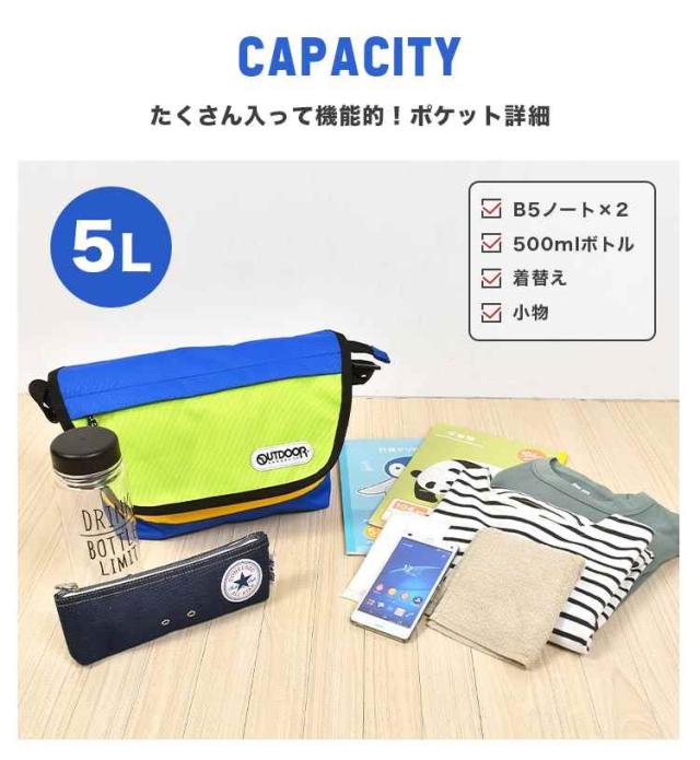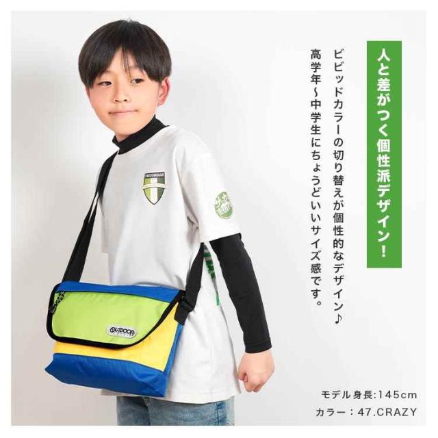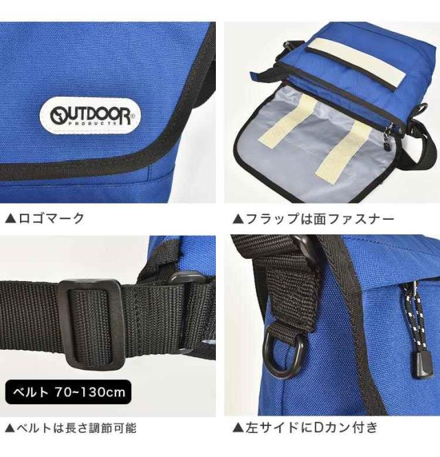 ショルダーバッグ キッズ OUTDOOR PRODUCTS アウトドアプロダクツ 男の子 女の子 メッセンジャーバッグ 斜めがけ こども 子ども 通学 通園 遠足 軽量 小学生 中学生 入学 ロゴ 無地 ブルー ブラック ネイビー ピンク 青 紺 黒 シンプル 小さめ ミニ 軽い かばん 鞄 バック