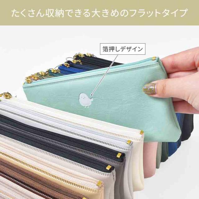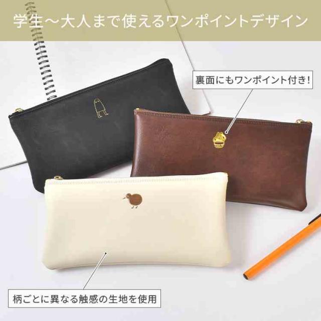 ペンケース 薄型 おしゃれ 大人 女性 高校生 大学生 日本製 フラットペンケース 筆箱 ペンポーチ 筆入れ ワンポイント コンパクト 大容量 合皮 PVC ファスナー 軽量 かわいい シンプル 箔押し アニマル 猫 犬 恐竜 シマエナガ ペンギン メジェド 通勤 通学 ギフト プレゼント