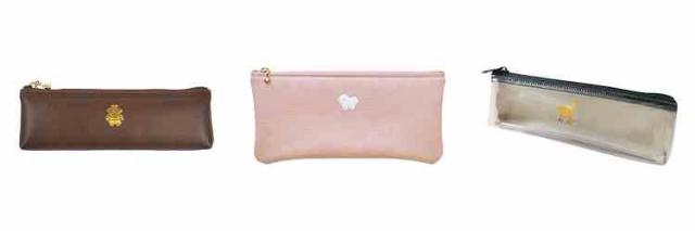 ワンポイントのモチーフを上品に箔押しした、PVC素材のフラットペンケース。