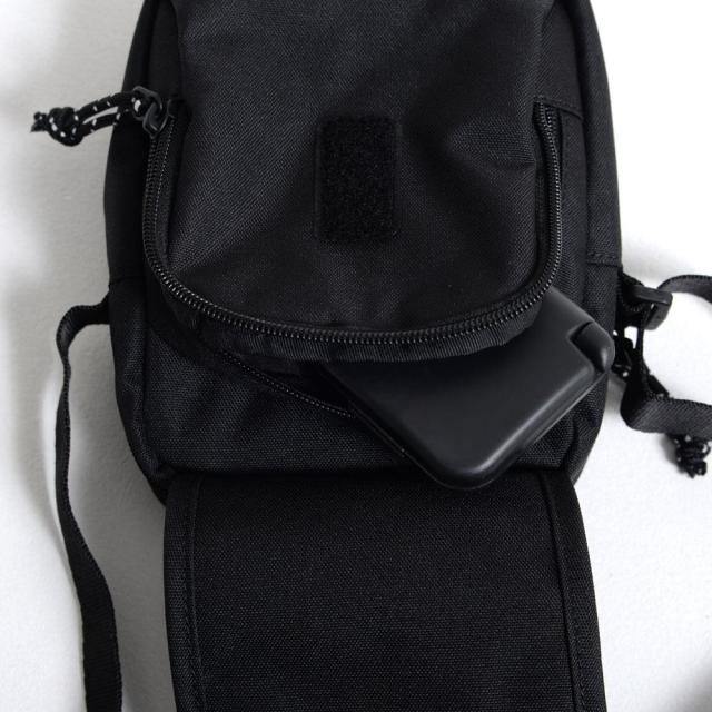 ハーフドームロゴが施されたコンパクトなフォルムのミニショルダーバッグ。