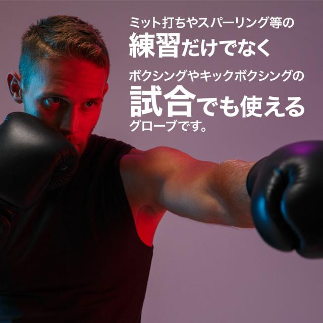 ボクシングやキックボクシングの試合でも使えるグローブです。
