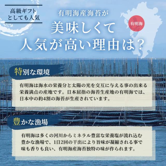 有明海産の初摘み焼のりならではのくちどけと風味が楽しめます。