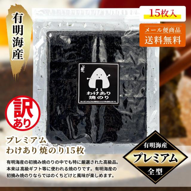 有明海産・初摘み 磯美人 プレミアムわけあり焼のり 15枚 のり ノリ 海苔 訳あり 15枚 おにぎり お得 高級