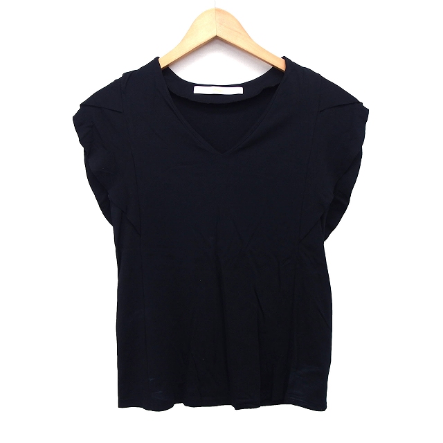 【中古】カージュ Khaju カットソー ブラウス 無地 シンプル フリル袖 半袖 Vネック ブラック 黒 /HT13 レディース
