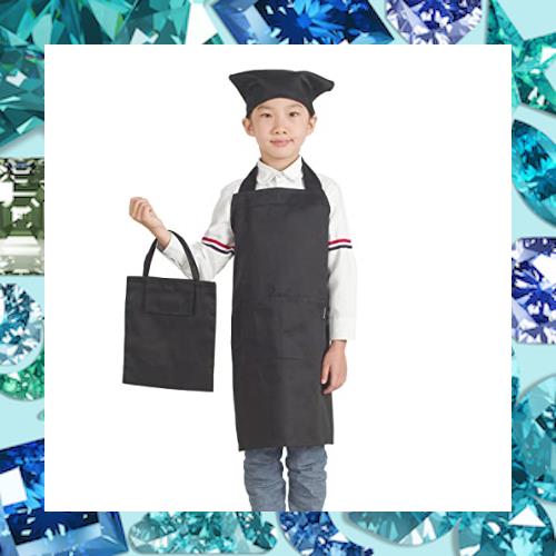?「可愛いデザインキッズエプロン」:お子様のために特別にデザインされたキュートなエプロン。鮮やかな明るい8色のカラーバリエーションで、お子様にぴったりです。 子供たちの自然な遊び心(例えば、シェフに扮するとか)に対応した独自のプリントで、家族で楽しむときも、一人で着るときも、楽しい気分にさせてくれます。 エプロンと三角巾と専用の収納袋は セットになっており、すべて丸角の柔らかいマジックテープが付いているので、子どもが一人でも着脱が安全で簡単です。お子さんを一人で活動させましょう