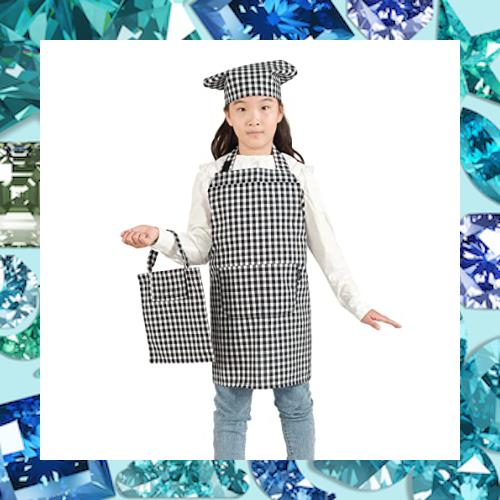 ?「可愛いデザインキッズエプロン」:お子様のために特別にデザインされたキュートなエプロン。鮮やかな明るい8色のカラーバリエーションで、お子様にぴったりです。 子供たちの自然な遊び心(例えば、シェフに扮するとか)に対応した独自のプリントで、家族で楽しむときも、一人で着るときも、楽しい気分にさせてくれます。 エプロンと三角巾と専用の収納袋は セットになっており、すべて丸角の柔らかいマジックテープが付いているので、子どもが一人でも着脱が安全で簡単です。お子さんを一人で活動させましょう