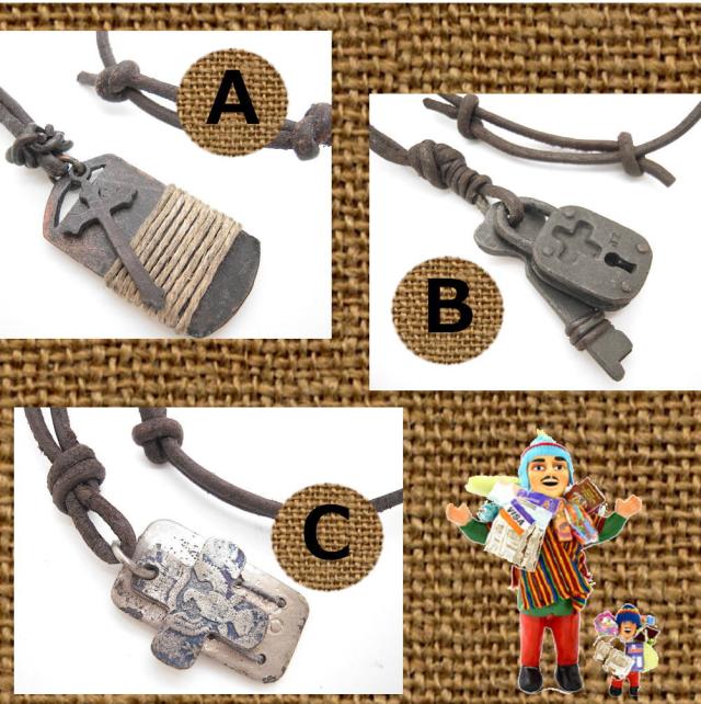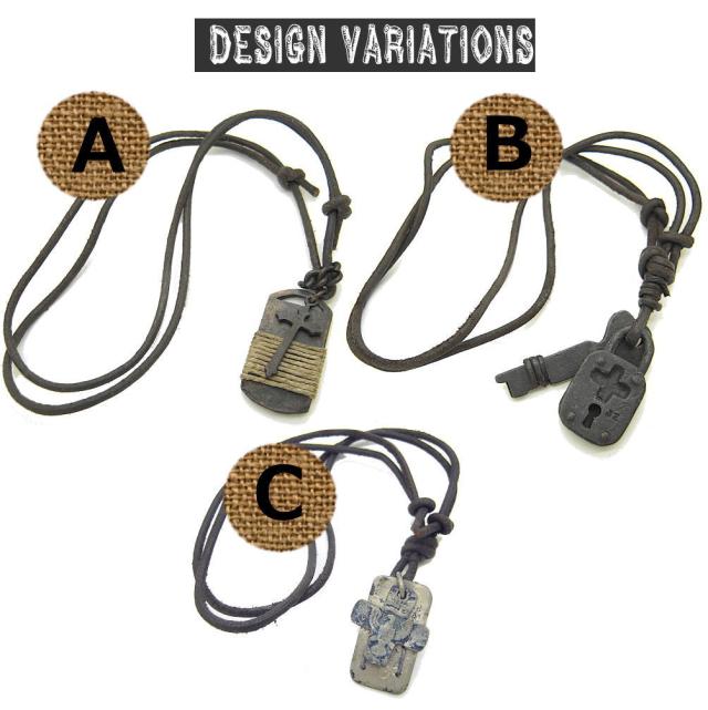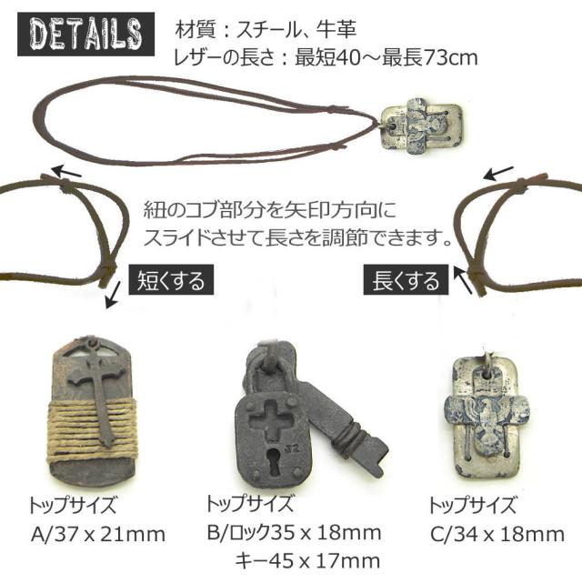 ユーズド加工 クロス 十字架 プレート タグ 鍵 キー 牛革 レザー チョーカー ネックレス ペンダント メンズアクセ 革紐ネックレス アンティーク加工 4-5001