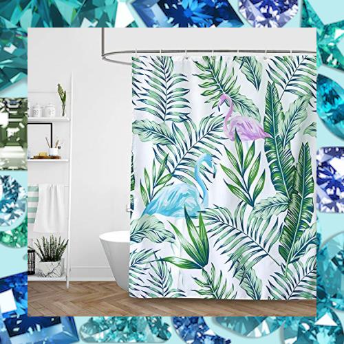 【サイズ】:幅120cm×丈150cm 素材:100%ポリエステル 仕様:防水防カビ 柄:フラミンゴ柄 パッケージ内容:本体*1+カーテンリング*8