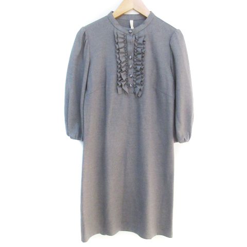 【中古】アンタイトル UNTITLED ワンピース ひざ丈 七分袖 バンドカラー ウール フリル 2 杢グレー /FF22 レディース