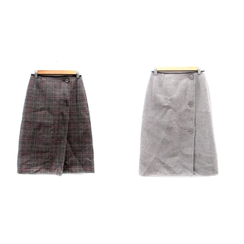 【中古】アンタイトル フレアスカート ボタンダウンスカート グレンチェック柄 ウール 0 グレー 黒 レディース