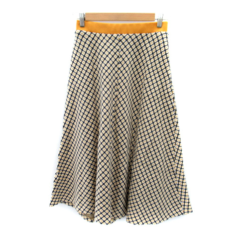 【中古】ドゥクラッセ DoCLASSE フレアスカート ロング丈 チェック柄 M 黄 白 黒 /SY27 レディース