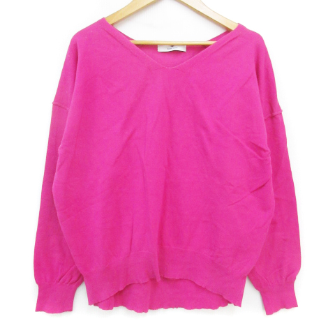 【中古】アーバンリサーチ サニーレーベル ニット カットソー 長袖 Vネック 無地 F ピンク /FF18 レディース