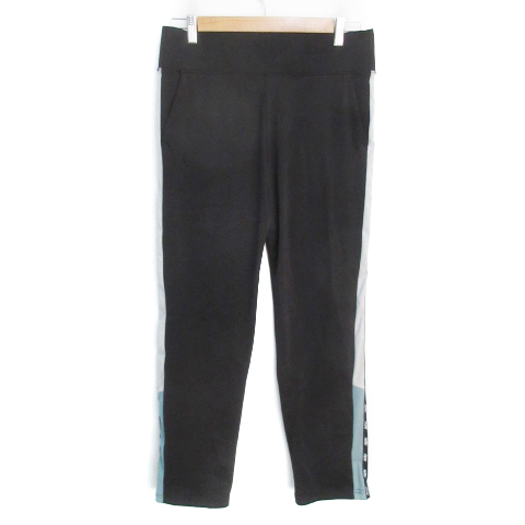 【中古】ナージー スポーツウェア ジャージ テーパードパンツ イージーパンツ ロング丈 ロゴ L 黒 グレー レディース