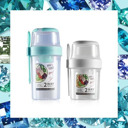 ?二層設計 : サラダミールシェイカーカップはキッチン収納ボックスとして使用できます。上下2つのカップがあり、2層設計で2種類の食品を同時に収納できます。