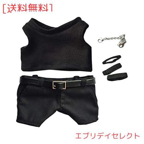 niannyyhouse 20cm綿人形の服 黒 ベスト ズボン ベルト 付属品 ぬいぐるみ 服 着せ替え