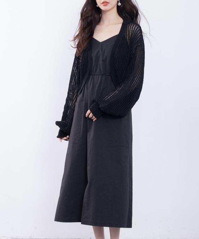 ドロストリボンVネックキャミワンピース