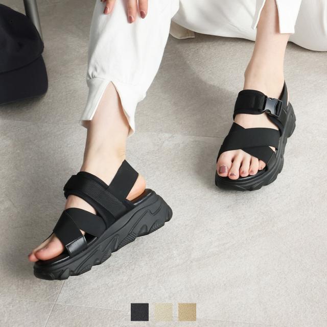 【24春夏新作】厚底クロスバンドダッドスポーツサンダル