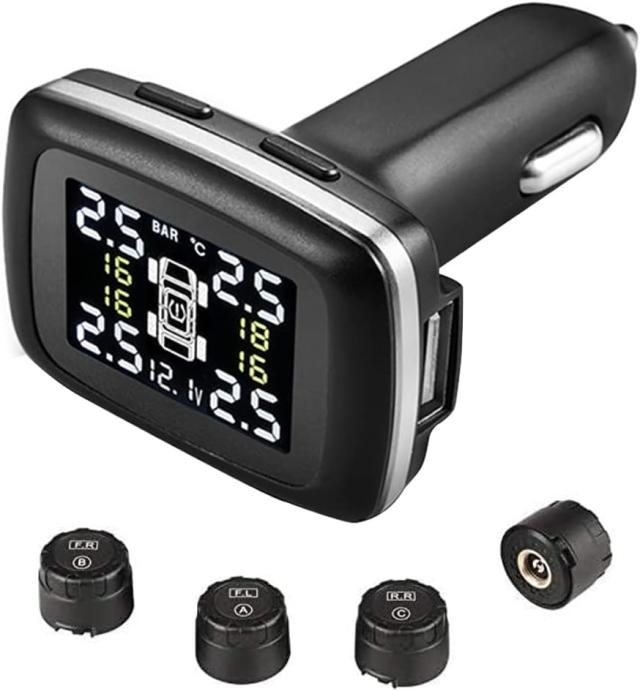OBEST タイヤ空気圧センサー 4外部センサー シガーソケット式 タイヤ空気圧モニター USBポート付き タイヤ空気圧監視システム 空気圧セン