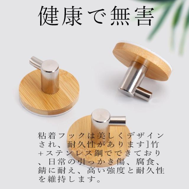 壁かけフック 4個セット 強力粘着 木製フック 壁フック ウォールフック 壁掛けフック 帽子掛け 帽子フック タオルハンガー 壁傷つけない