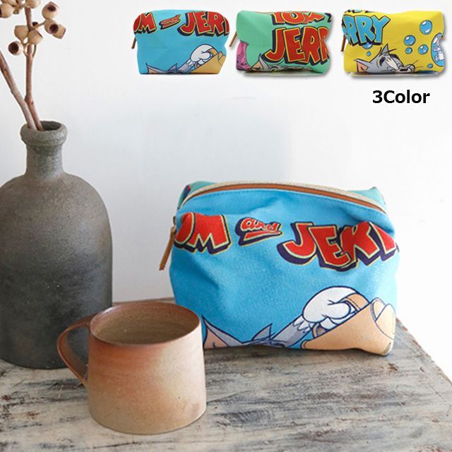 大きく開いてたっぷり入る嬉しいマルチポーチ!ポップでカラフルなトムジェリポスターアートがオシャレ!