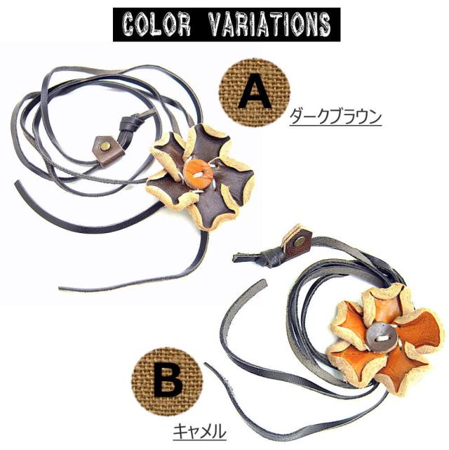 革製 レザーフラワー ロングチョーカー 手作り 花のレザーネックレス レザークラフト 革細工 ロング 山ガール かわいい アウトドア ファッション 長い ネックレス 4-5002