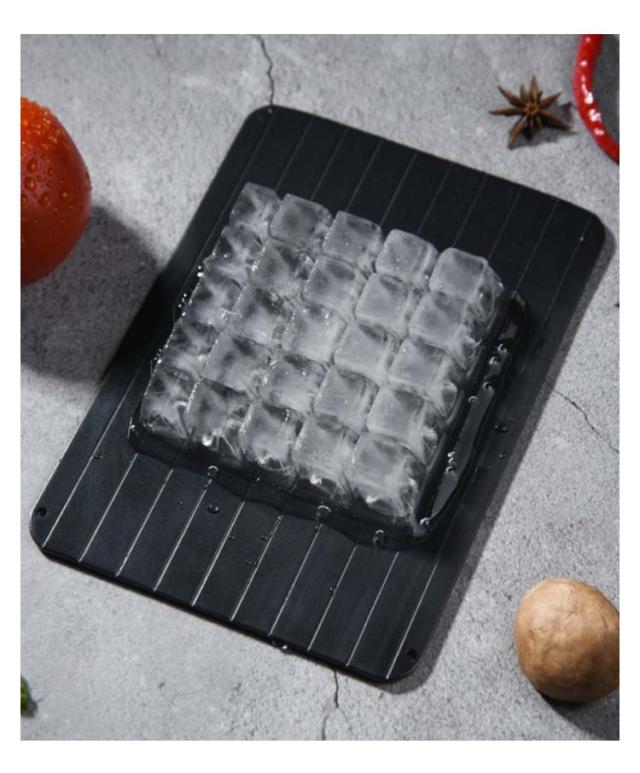| 清潔感があり、美しくて頑丈な高品質アルミ素材を採用しています。 放熱性に優れ、高速な熱交換を通して急速解凍できるプレートです。 冷凍庫から出して、置くだ。 自然な方法や電子レンジで肉を解凍より、ガス・電気も使用しないので安全、節電節約、経済的なエコ商品です。 食べ物からでた余分なドリップ汁が流れていく仕組みで、汚れの付きにくいシンプルな構造。 | |