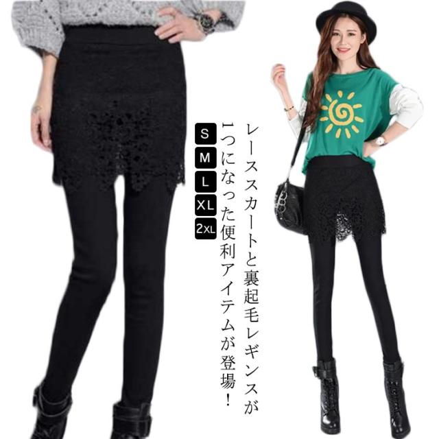 レーススカート ウエストゴム 冬服 レギンス タイトスカート 裏起毛 スパッツ レギンス付きスカート スカート付きレギンス 秋冬 レギンスパンツ ストレッチ オシャレ 美脚 着?せ S M L XL