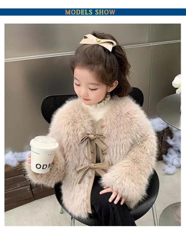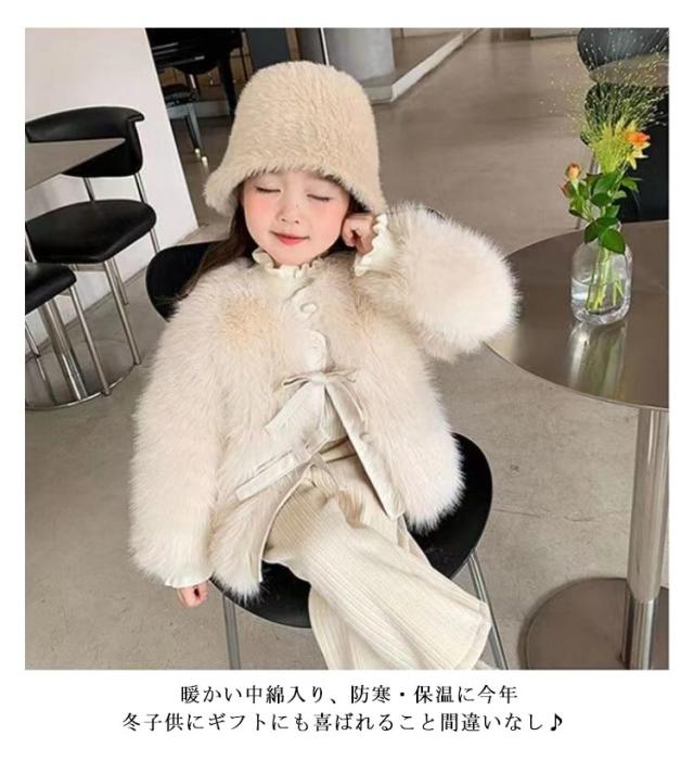 | とっても可愛らしい女の子ファーコート わふわで肌触りが良い子供のフェイクファーコートです。 ふわふわで柔らかなエコファーを使用し、羽織るだけで暖かい。 シンプルなドレスやワンピースと合わせても華やかな印象になるのでフォーマルにもおすすめです。 暖かい中綿入り、防寒・保温に今年冬子供にギフトにも喜ばれること間違いなし♪ | |