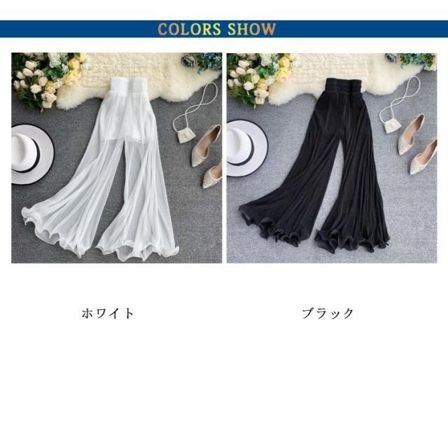 シフォン ワイドパンツ ガウチョパンツ ダンス衣装 薄手 ロングパンツ ガウチョパンツ 透け感 美脚 春夏 ヨガパンツ ロング丈 フレアパンツ 着痩せ 快適 ウエストゴム 春夏 ゆったり レディース 涼しい 無地 ブラック ホワイト 大人 女性