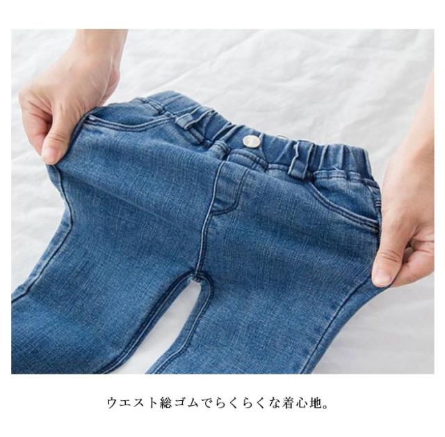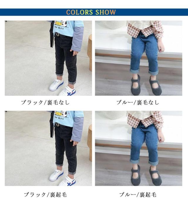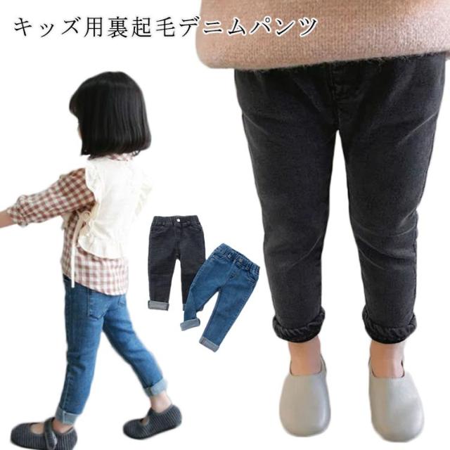 女の子 ジーンズ 秋服 裏ボア 防寒 長ズボン ロングパンツ 男の子 ジーパン スキニーパンツ 伸縮性 レギンス 暖かい ストレッチ 保温 キッズ ボトムス 子供 裏起毛パンツ 子供服 子ども服 幼児 カジュアル 春服 デニムパンツ 無地 シンプル 送料無料